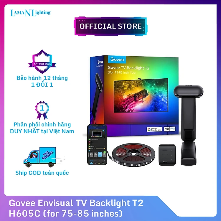 Đèn LED dây mở rộng màn hình Govee Envisual TV Backlight T2 H605C (75-85") | Cảm biến đổi màu mượt mà từng khung hình