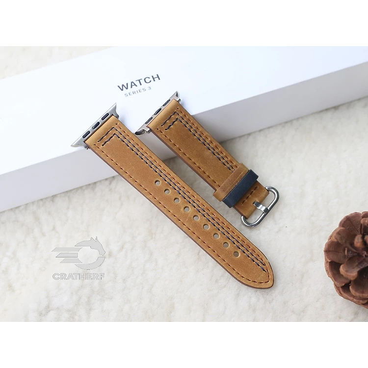 Dây đeo thay thế dành cho Apple Watch Ultra da bò sáp ngựa điên nhiều màu- Hàng Chính hãng