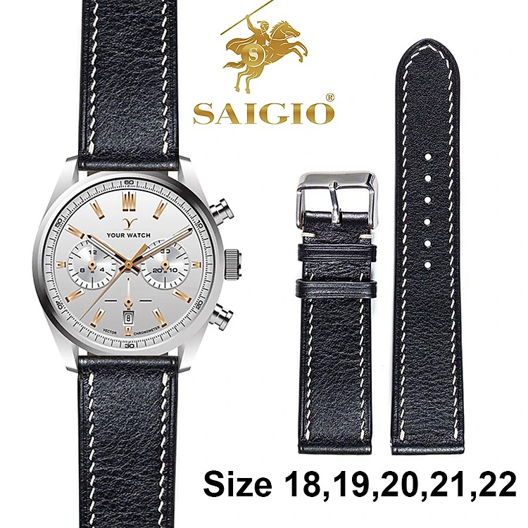 Dây Đồng Hồ Da Bò Cao Cấp, Kiểu Dáng Cổ Điển - Phẳng Mỏng - Chỉ Trắng, Mặt Lót Chống Thấm Mồ Hôi, Tích Hợp Lớp Gia Cố Chống Giãn Đặc Biệt, Phụ Kiện Khóa và Chốt Bằng Thép Không Gỉ 316L - Hàng Chính Hãng SAIGIO