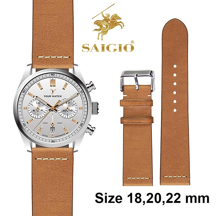 Dây Đồng Hồ Da Bò Cao Cấp, Kiểu VINTAGE THREAD Phẳng Mỏng, Mặt Lót Chống Thấm Mồ Hôi, Tích Hợp Lớp Gia Cố Chống Giãn Đặc Biệt, Phụ Kiện Khóa và Chốt Bằng Thép Không Gỉ 316L - Hàng Chính Hãng SAIGIO