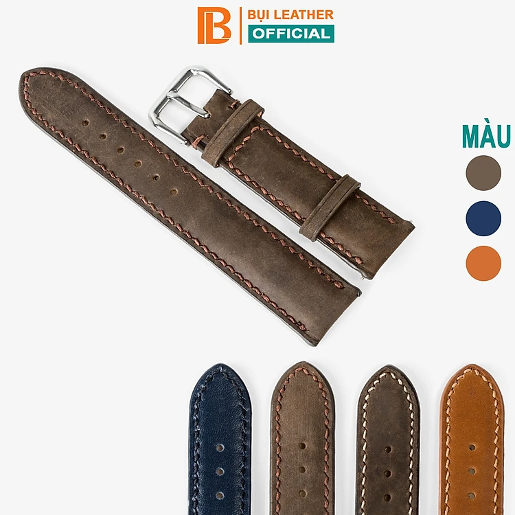 Dây đồng hồ da bò Vintage Bụi Leather D111 - Da thật khâu tay thủ công cao cấp - Bảo hành 12 tháng