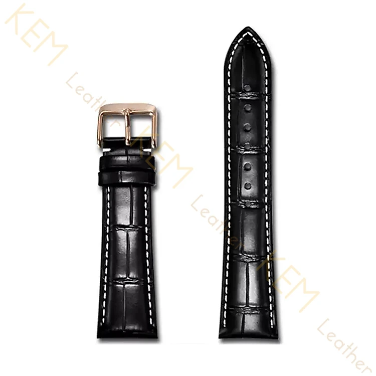 Dây Đeo đồng hồ Da Cá Sấu Đen Chỉ Trắng Size 19/20/21/22 - Dây Đeo Da Cá Sấu Thật 100% - Bảo Hành 12 Tháng