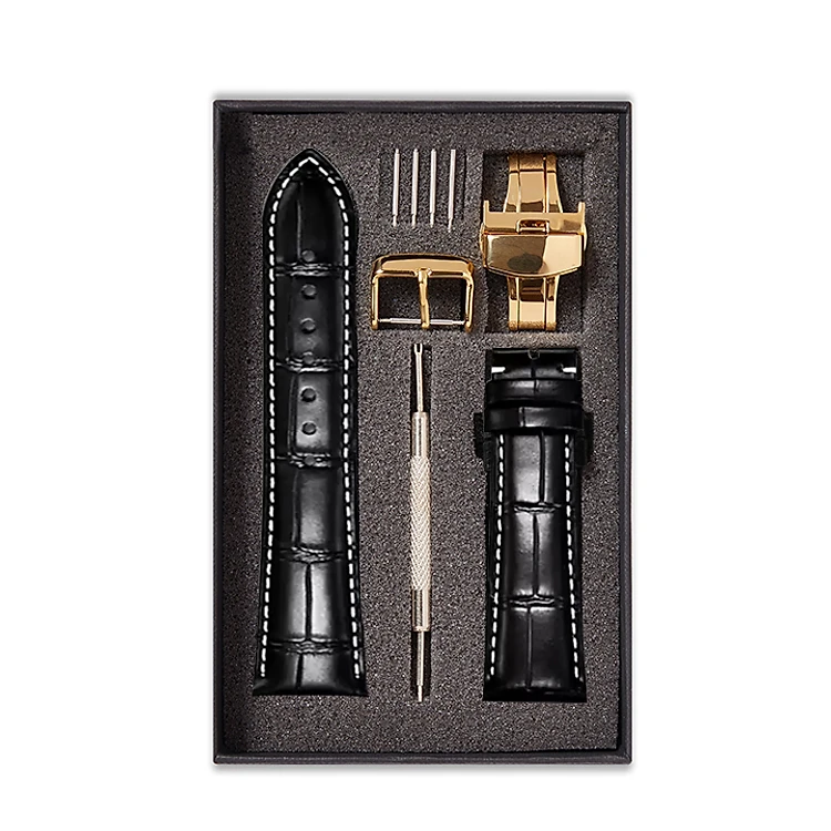 Dây đồng hồ Handmade Da Cá Sấu Đen Chỉ Trắng Size 20/22mm - Dây Đeo Da Cá Sấu Thật 100% - Bảo Hành 12 Tháng