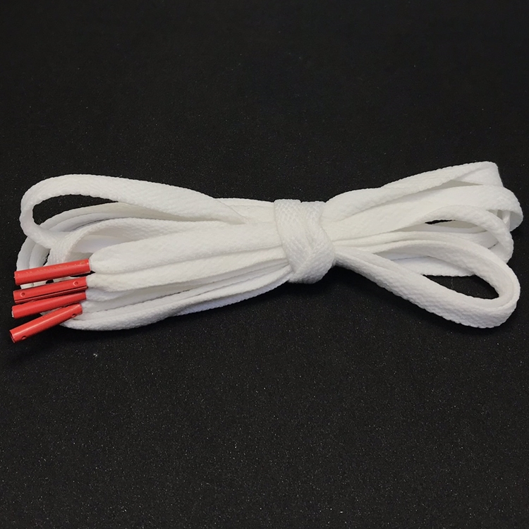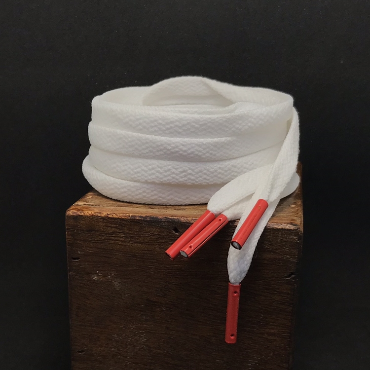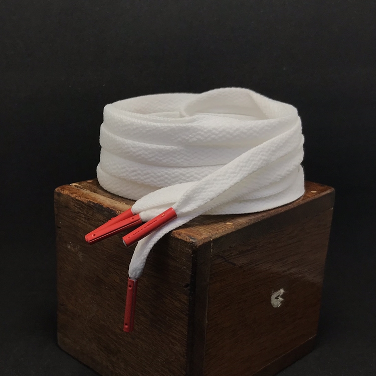 Dây giày trắng dẹt, đầu bọc kim loại đỏ