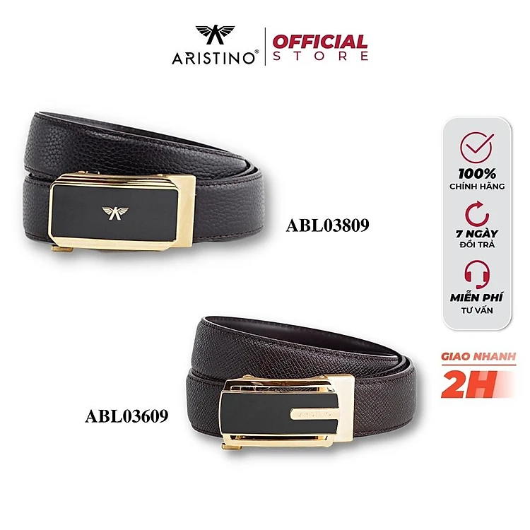 Dây Lưng Nam ARISTINO Da Bò Cao Cấp Mặt Bằng Thép Không Gỉ Khóa Tự Động Full Option