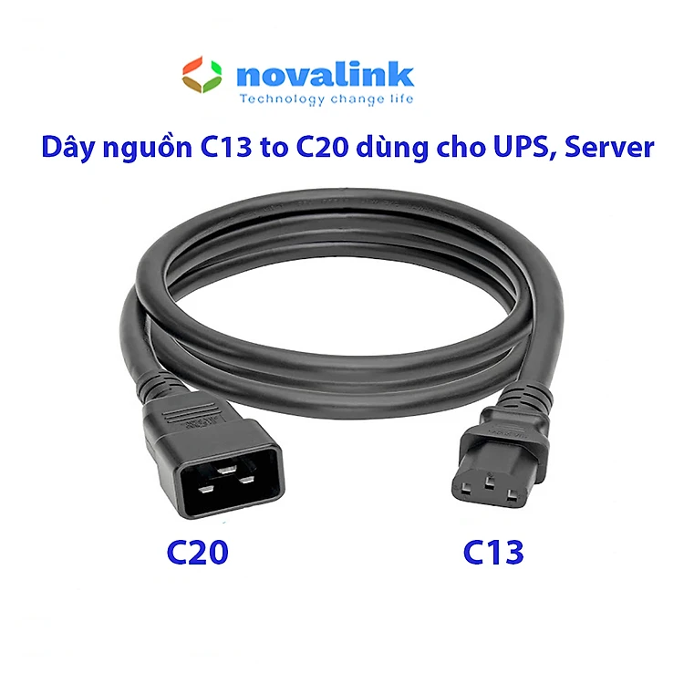 Dây nguồn C13 C20 dài 2 mét Novalink - Dùng cho UPS, PDU, máy chủ (Server) - Tiết diện lõi 2.08mm², 15A/250V, chuẩn UL - Hàng chính hãng