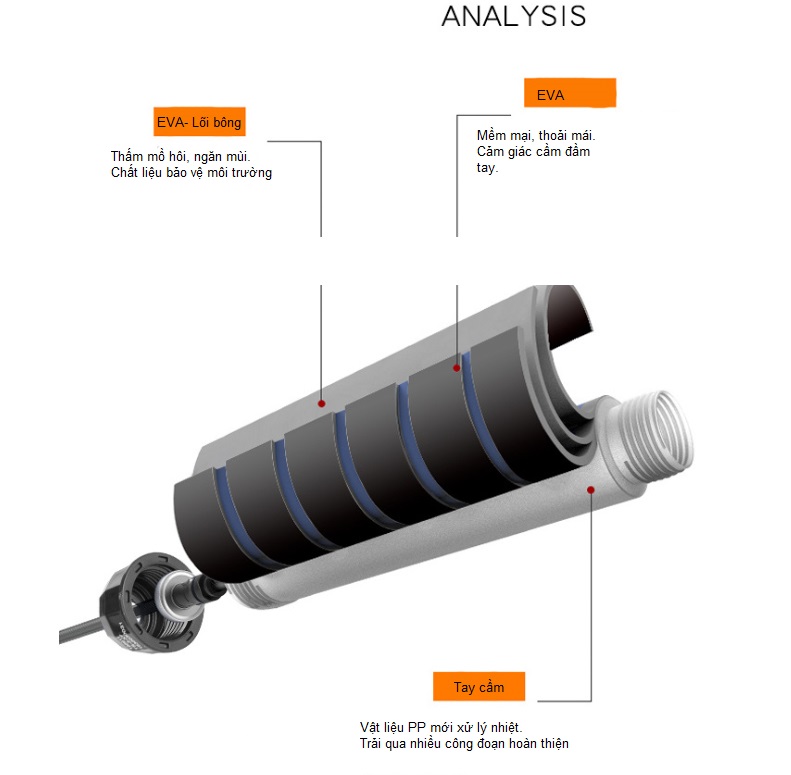 Tay cầm chắc chắn, chống trượt vừa vặn với bàn tay. Hút mồ hôi, cho cảm giác cầm thoải mái
