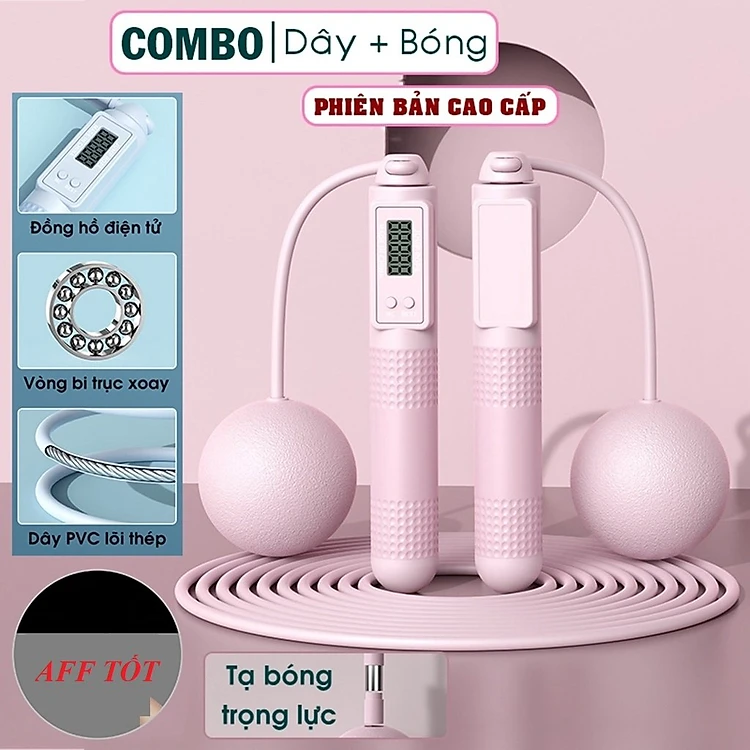 Dây nhảy thể dục không dây có bóng tặng kèm dây dà lõi thép 3m( Đến số vòng, đếm calo , đếm km) Mã 5MH