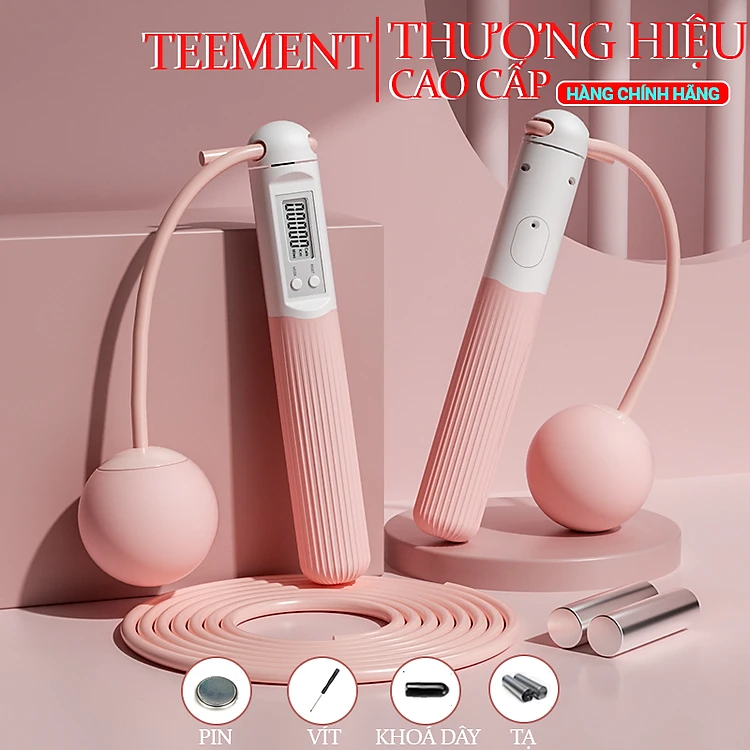 Dây Nhảy Thể Thao Lõi Thép Cao Cấp Teement Tự Động Đếm Số, Tích Hợp Đo Calo, Quãng Đường, Độ Dài Dây Tùy Chỉnh - Kèm Bóng Xoay Và Tạ Điều Chỉnh Khối Lượng, Có Tay Cầm Chống Trượt Tiện Lợi - Hàng Chính Hãng