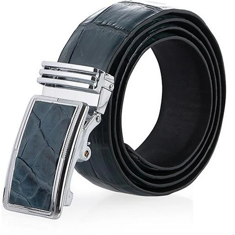 Dây nịt nam da cá sấu Huy Hoàng nguyên con bụng màu xanh đậm HT4801