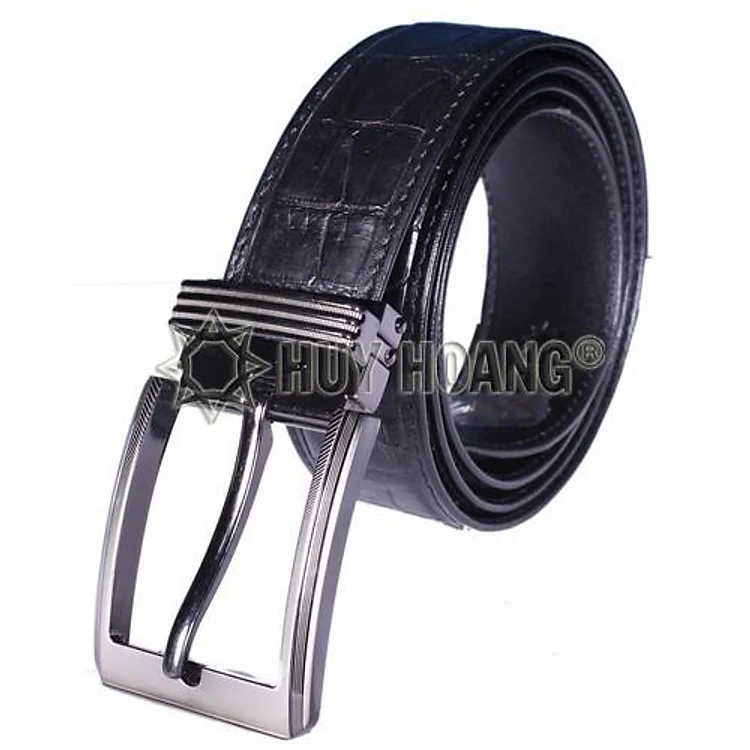 Dây nịt nam da cá sấu Huy Hoàng viền da 4P đầu kim màu đen - HP4823