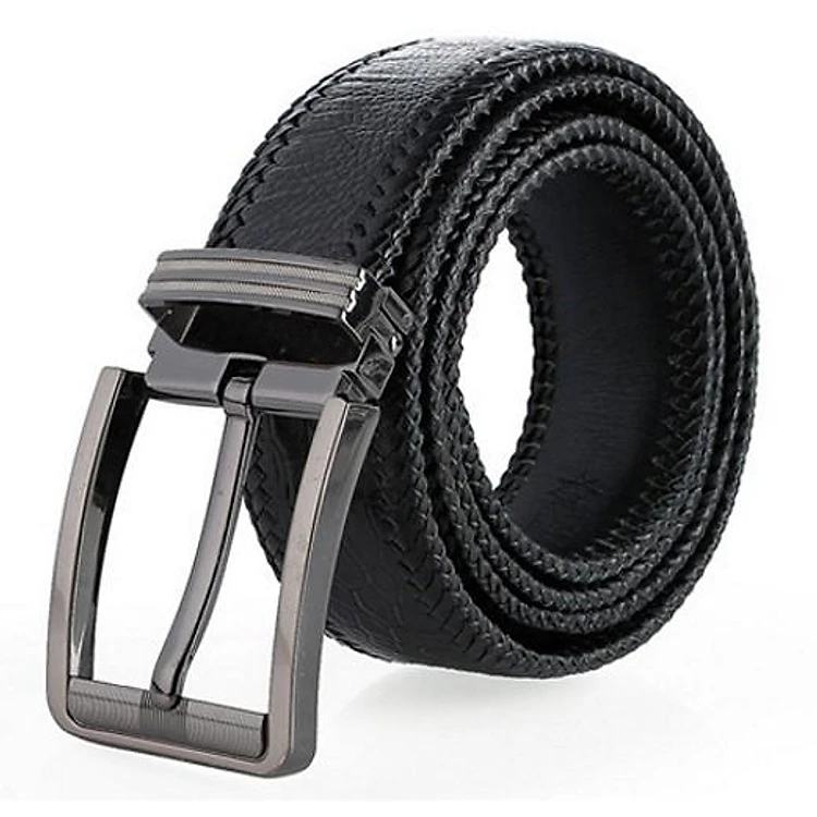 Dây nịt nam da đà điểu Huy Hoàng đan viền bản lớn đầu kim màu đen HP4459