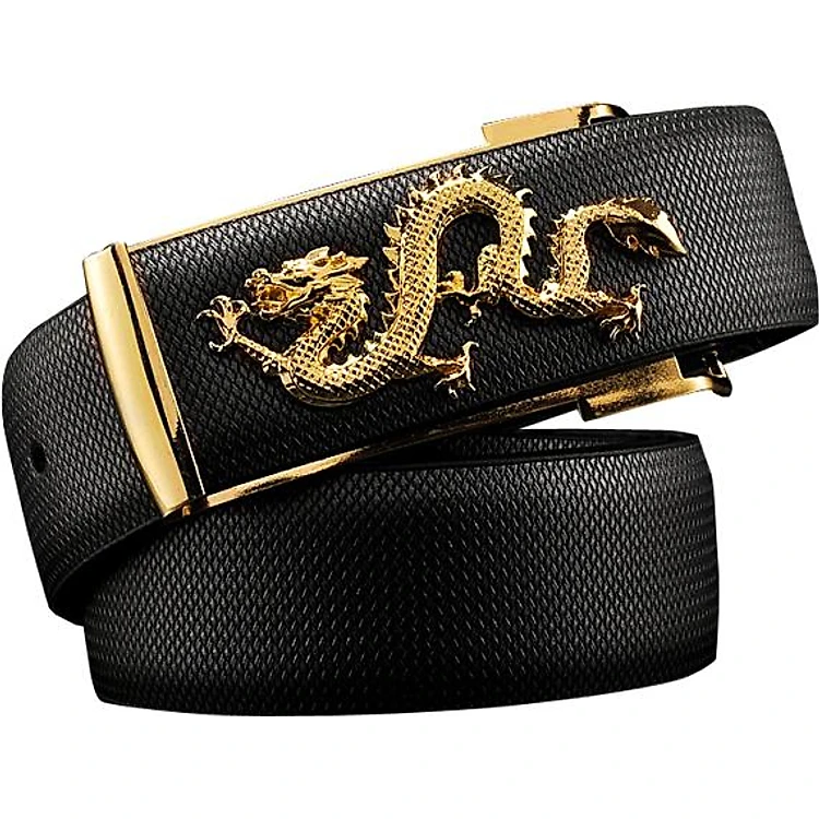Dây nịt nam hình con rồng DN31 - Dây Đen, Mặt Vàng