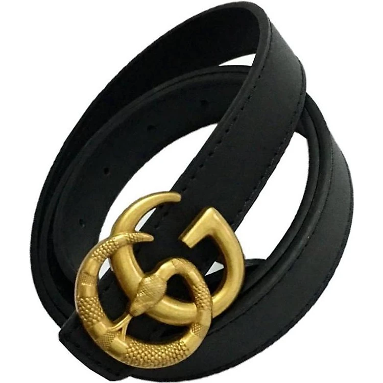Dây nịt nữ thời trang cao cấp mặt rắn mạ vàng độc đáo GG08 (dây đen)