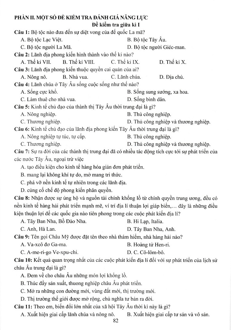 Đề Kiểm Tra Đánh Giá Năng Lực Môn Lịch Sử - Địa Lí (Phần Lịch Sử) Lớp 7