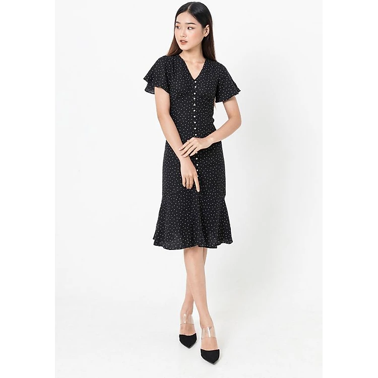 De Leah - Đầm Ôm Đuôi Cá Cúc Trai - Đen