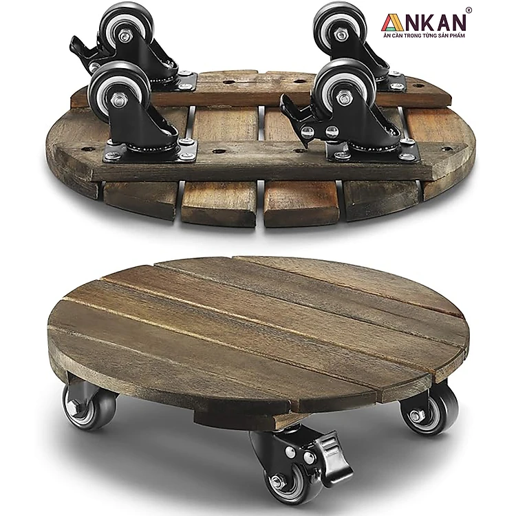 Đế Lót Chậu Cây Có Bánh Xe Cao Cấp ANKAN Hình Tròn Màu Xám Đen R30Cm Tải trọng 150 Kg Gỗ Tràm Bông