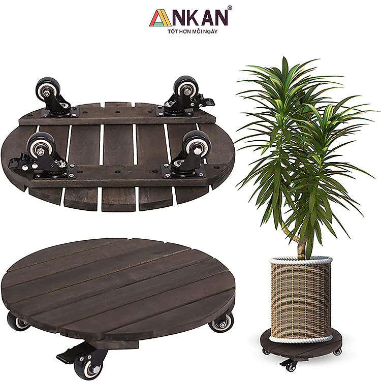 Đế Lót Chậu Cây Có Bánh Xe, Tròn 40cm, Màu Đen, Tải Trọng 150Kg, Di Chuyển Chậu Cây to, Thương Hiệu ANKAN