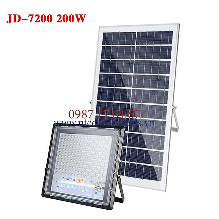 Đèn Pha Chống Lóa Cao Cấp Năng Lượng Mặt Trời mã JD-7200 Công Suất 200W - Khung Nhôm nguyên khối
