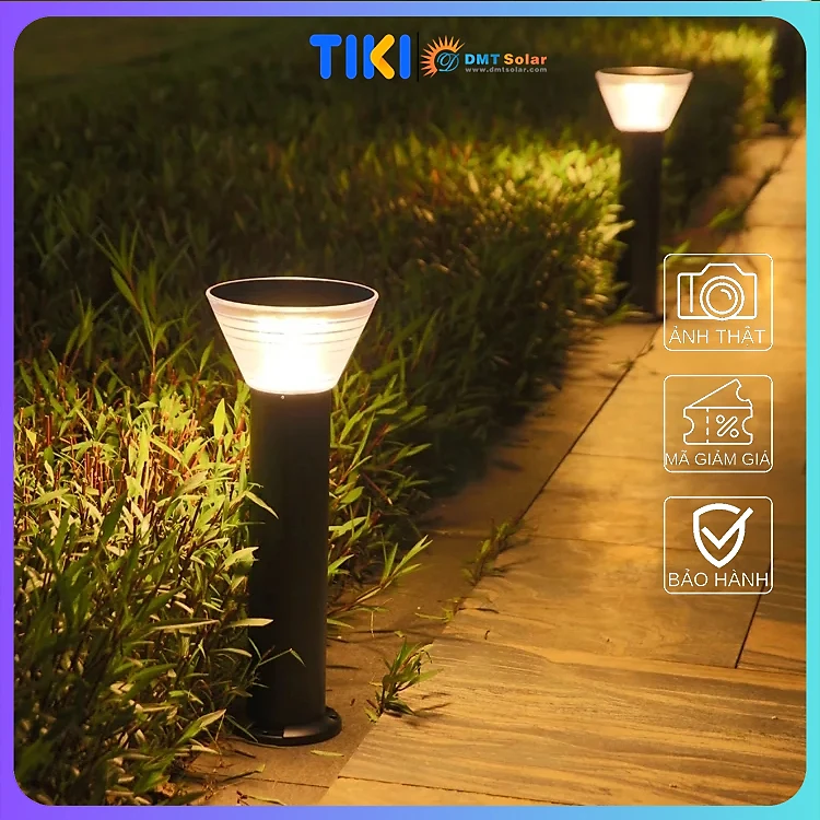 Đèn trụ tròn sân vườn năng lượng mặt trời cao 60cm TS06D ánh sáng vàng
