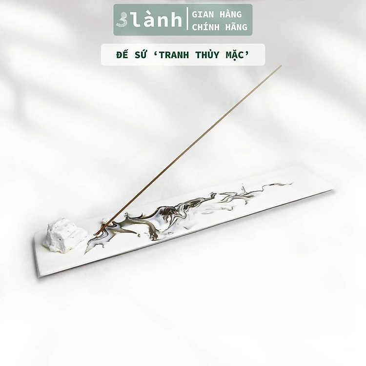 Đế Nhang Nụ Trầm Hương Sứ Tráng Men Cao Cấp Họa Tiết Tranh Thủy Mặc Phong Thủy Sông Núi Thiền Nhật Thủ Công 3 Lành