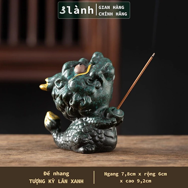 Đế Nhang Trầm Hương Tượng Kỳ Lân Gốm Sứ Cao Cấp Xanh Trắng 3 Lành Trang Trí Tâm Linh Thờ Cúng Thư Giãn