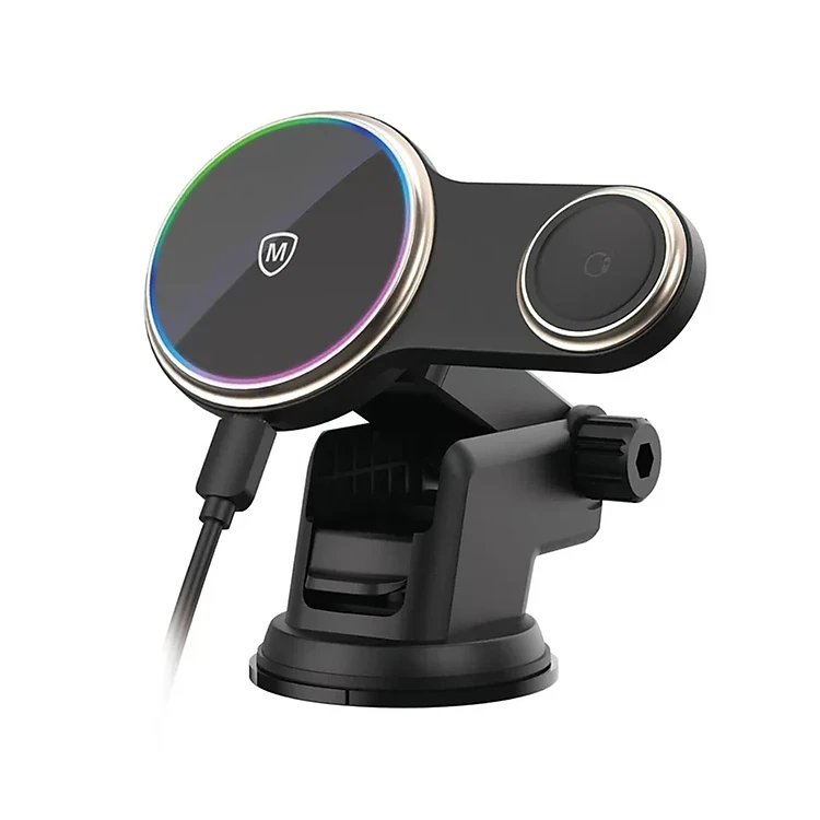 Đế sạc điện thoại Micropack gắn trên ô tô không dây từ tính 2 trong 1 tích hợp sạc đồng hồ thông minh MCC-215M - Hàng chính hãng