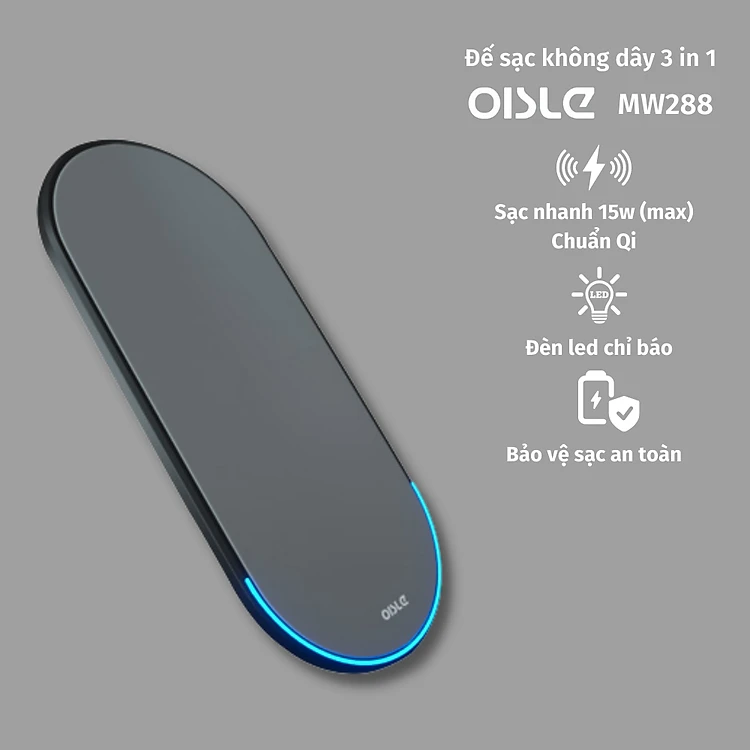 Đế Sạc Không Dây 3 In 1 Oisle MW288 Hỗ Trợ Sạc Nhanh Chuẩn Qi Đèn Led Chỉ Báo – Hàng Chính Hãng