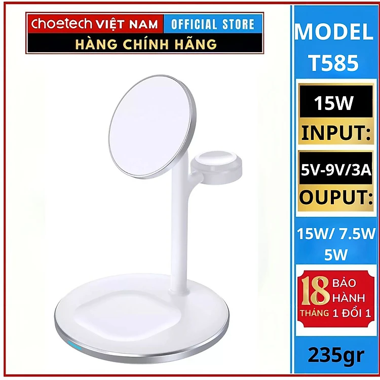 Đế sạc Choetech T585-F không dây Mag-safe 3 in 1 dành cho IP, AIR-PODS, AP-PLE WATCH (Hàng chính hãng)