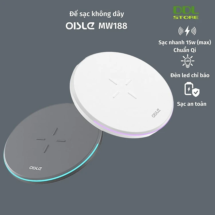 Đế Sạc Không Dây Oisle MW188 Hỗ Trợ Sạc Nhanh 15W Chuẩn Qi Đèn Led Chỉ Báo Dành Cho Iphone Android – Hàng Chính Hãng – Màu Ngẫu Nhiên