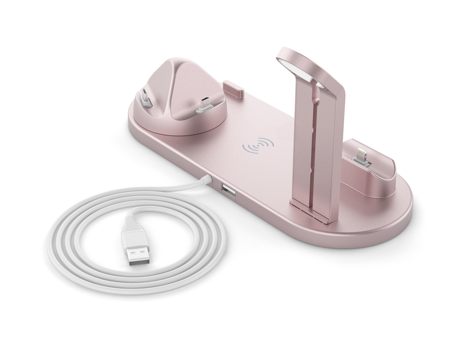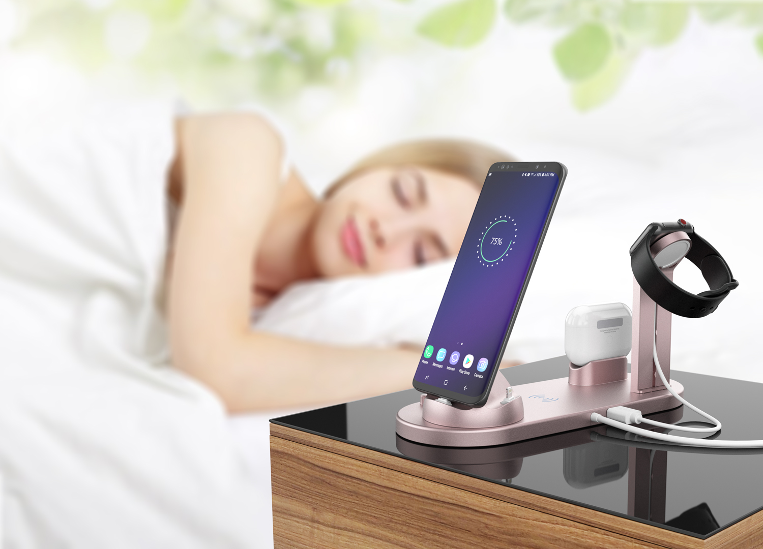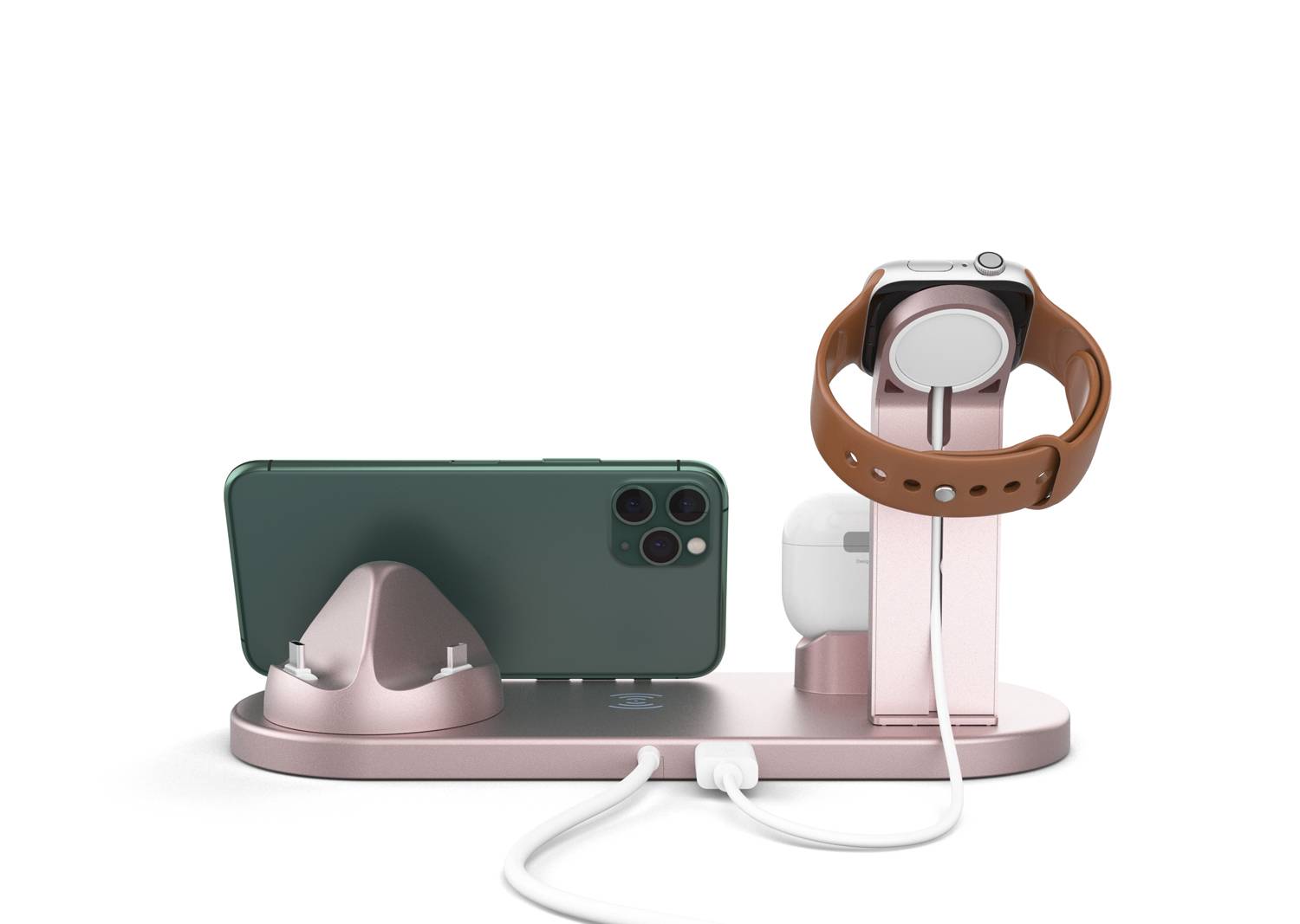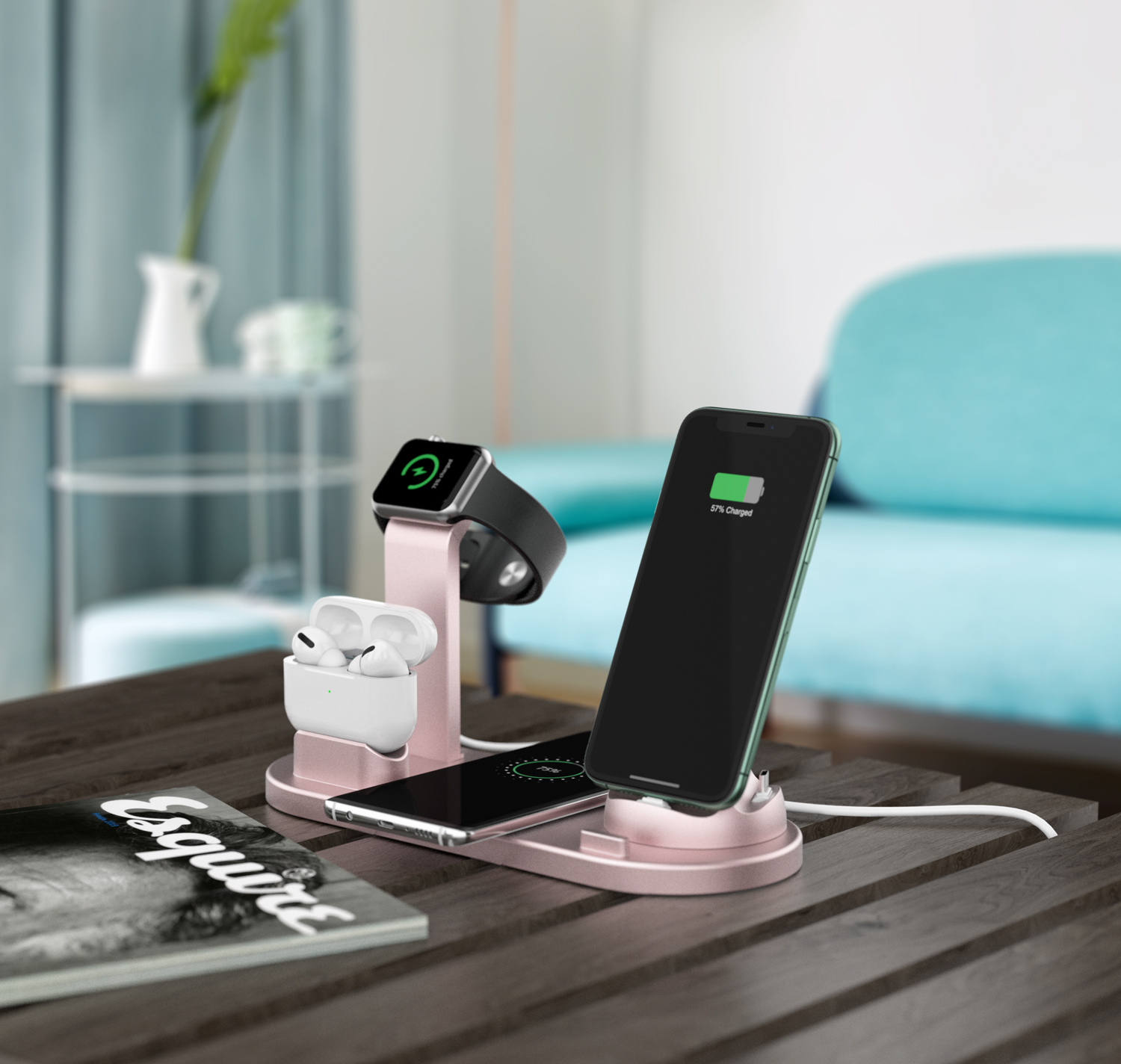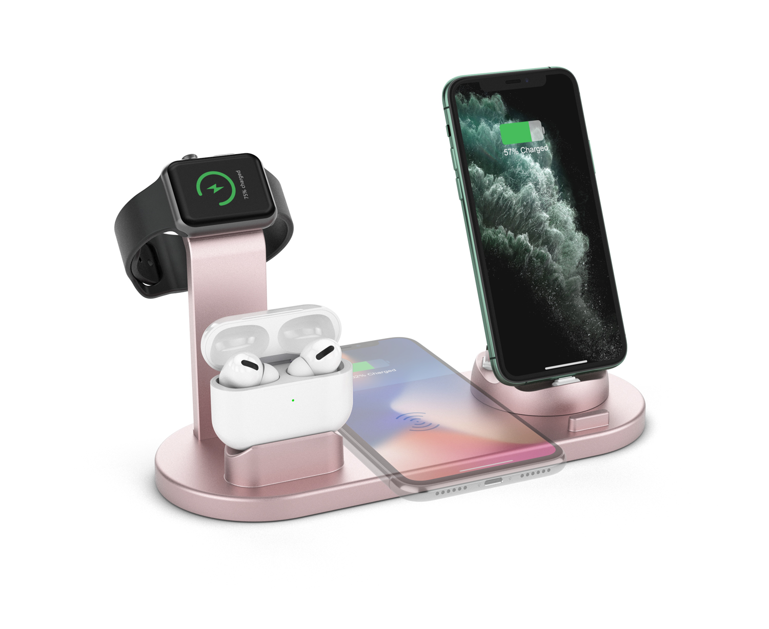 Đế sạc nhanh không dây QGeeM 4 trong 1 chuẩn Qi cho Apple Watch, Airpods, iphone 12/11/ Pro/ X XS XR Xs Max 8 8 Plus-Hàng chính hãng