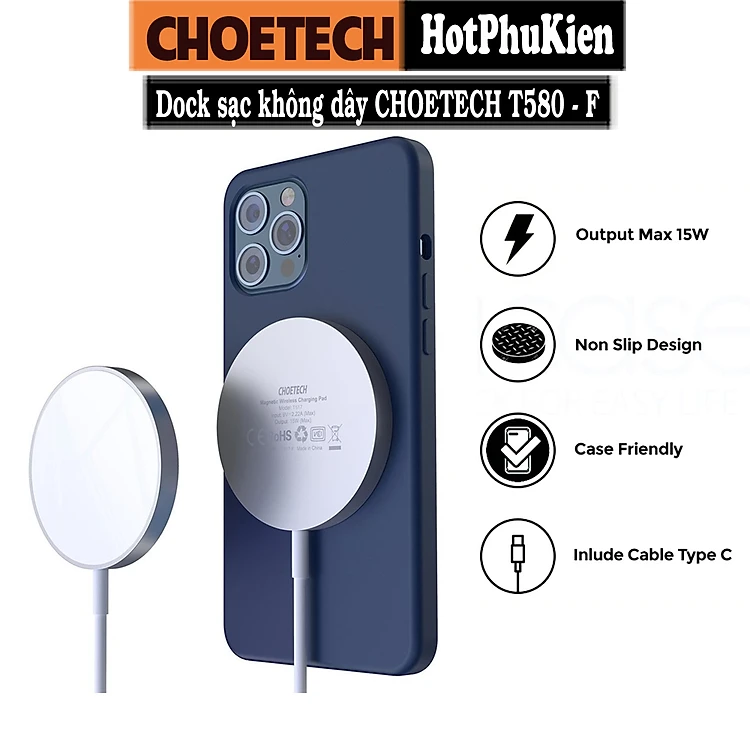 Đế sạc từ tính không dây sạc nhanh 15W chuẩn Qi hiệu CHOETECH T580-F - sạc được cho tất cả thiết bị hỗ trợ sạc không dây, chip sạc thông minh, công nghệ sạc nhanh và an toàn - hàng nhập khẩu