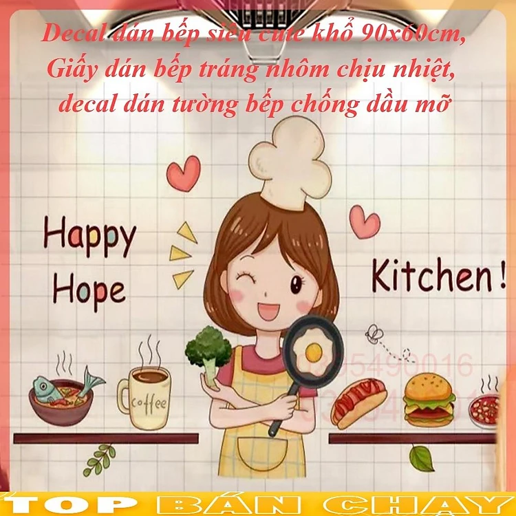 Decal dán bếp siêu cute khổ 90x60cm, Giấy tráng nhôm chịu nhiệt, chống dầu mỡ, không thấm nước, lau chùi dễ dàng