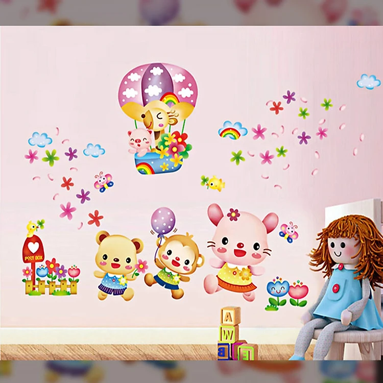Decal dán tường chất liệu PVC loại 1 dày dặn, sắc nét,không độc hại, chuyên trang trí phòng khách, phòng ngủ, phòng học cho bé, giúp bé nhận biết màu sắc- vườn thú sắc màu tinh nghịch- mã sản phẩm ABC1032