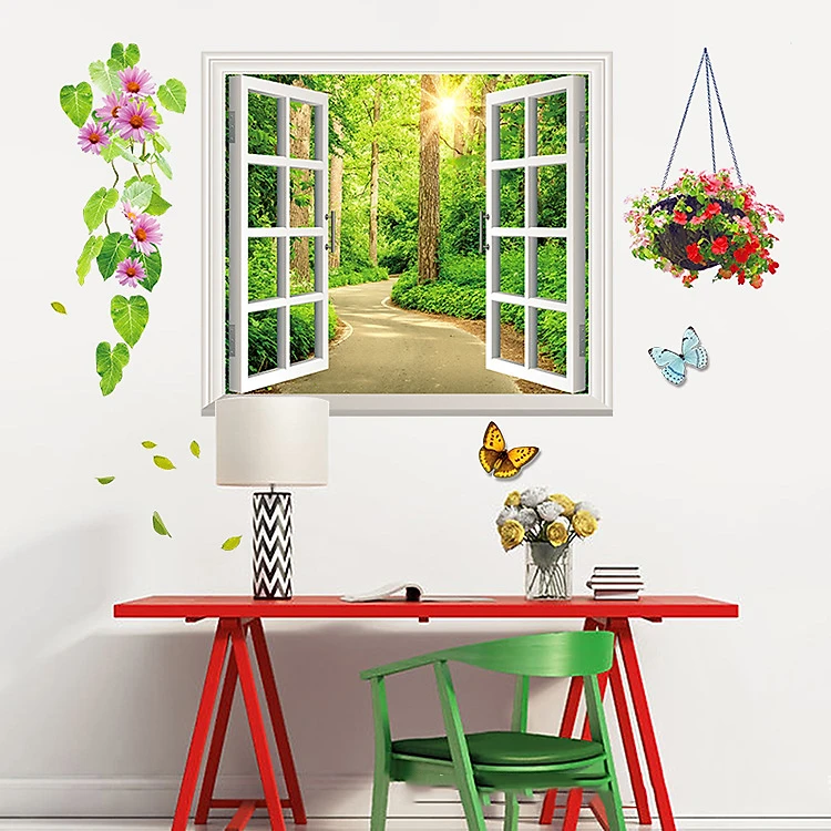 Decal dán tường Cửa sổ con đường xanh (58 x 103 cm)