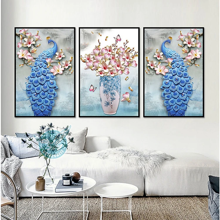 Tranh có tích hợp sẵn keo (lột lớp nilon ở mặt sau tranh ra và dán, có thể kết hợp dán với keo sữa để tăng thêm độ bám dính)