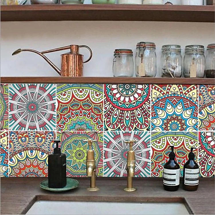 Decal gạch bông CAO CẤP dán nhà bếp sáng tạo set 6 tấm 20 x 20 cm (Chất liệu nhựa dẻo PET)