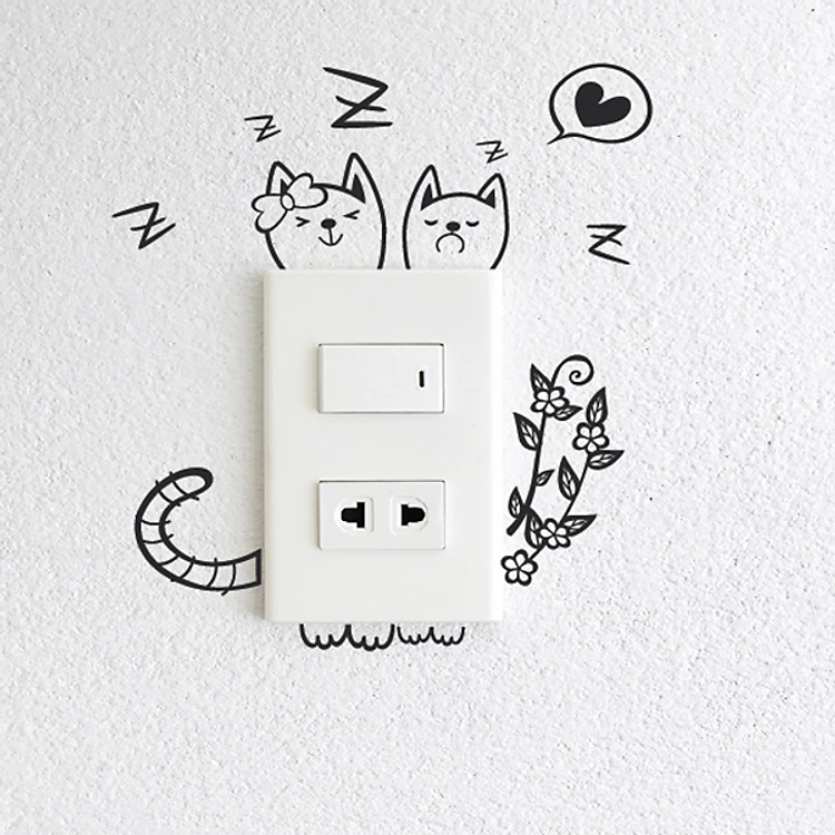 Decal Trang Trí Ổ Cắm Điện NineWall Sleep Kitty DE007