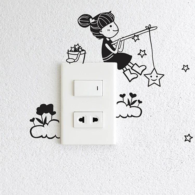 Decal Trang Trí Ổ Cắm Điện NineWall Star Girl DE008