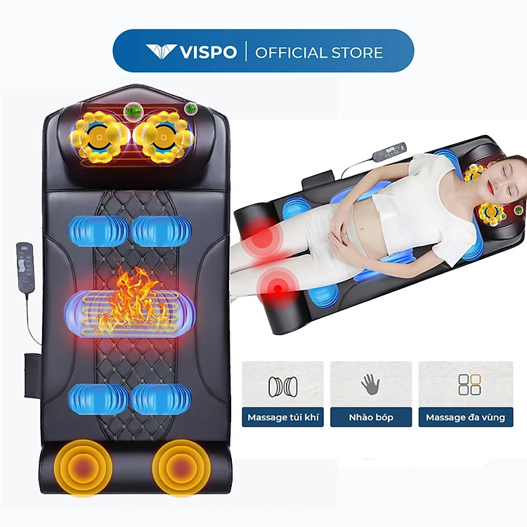 Thiết kế kết hợp túi khí và gối massage nhiệt hồng ngoại, giúp thư giãn và giảm đau cơ thể hiệu quả.