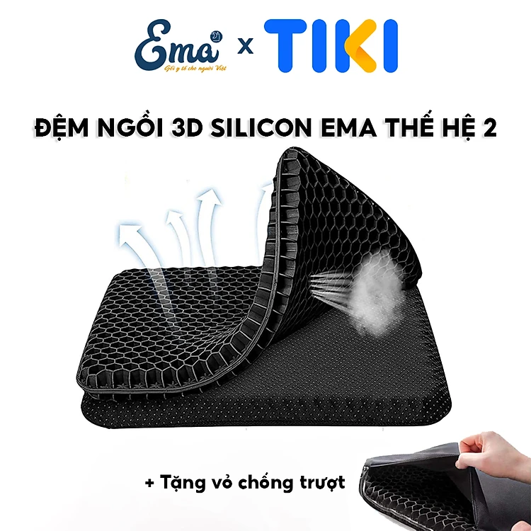 Đệm ngồi 3D Silicon thoáng khí Ema thế hệ 2, Giảm áp lực lên mông, giảm đau mông, ê mông