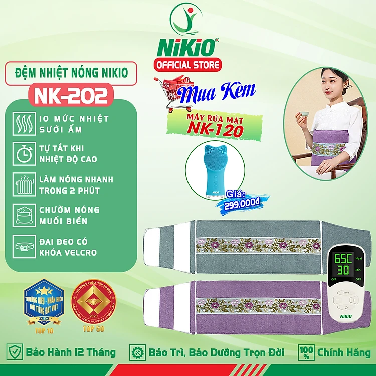 Đệm nhiệt nóng sưởi ấm toàn thân Nikio NK-202 - Dòng cao cấp có khóa dán