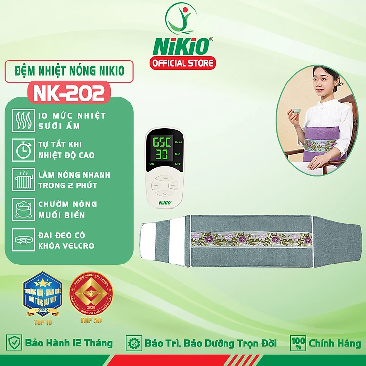 Đệm nhiệt nóng sưởi ấm toàn thân Nikio NK-202 - Dòng cao cấp có khóa dán