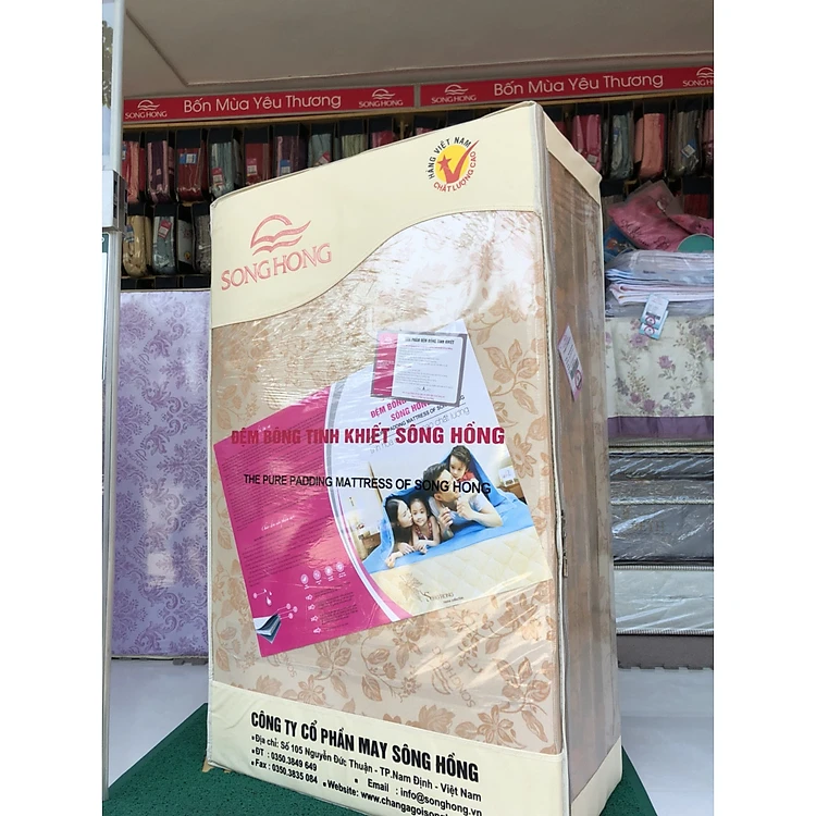 Đệm bông tinh khiết với tính năng kháng khuẩn khử trùng, đệm có độ phẳng cao nên rất tốt cho cơ thể đặc biệt vùng xương cột sống, giúp lưu thông khí huyến, tạo cảm giác thoải mái sau khi tỉnh giấc. Những người có bệnh về xương khớp Sông Hồng khuyên nên dùng đệm bông ép sẽ làm thuyên giảm đau nhức các khớp xương, những người không bị Sông Hồng cũng khuyên dùng dòng đệm này để phòng chống nguy cơ mắc phải. Thêm lần nữa sản phẩm đệm bông tinh khiết thế hệ thứ 2 của Sông Hồng là tinh hoa, là niềm tự hào của người dân Việt Nam.
