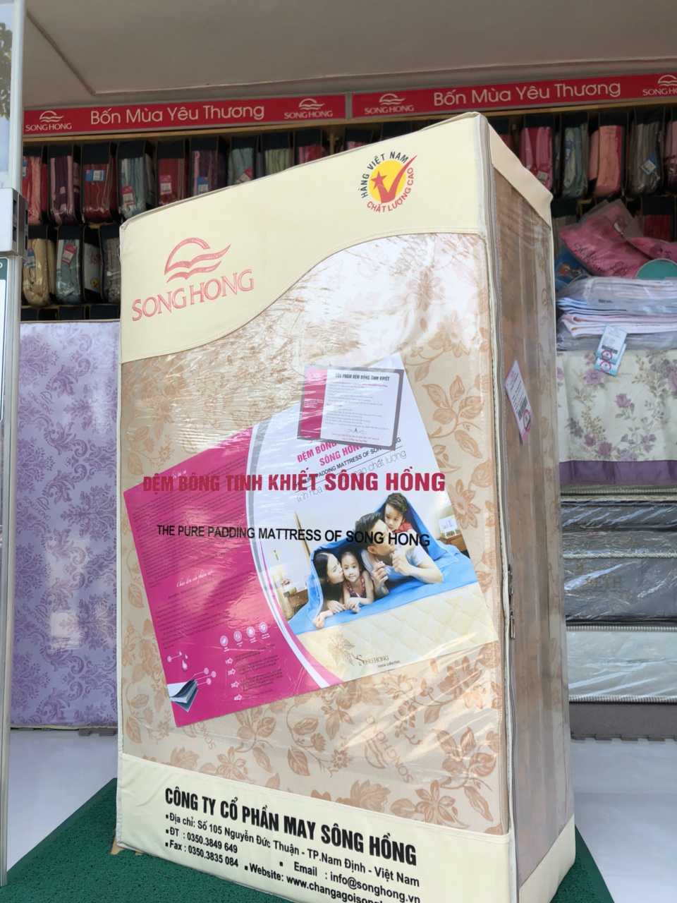 Đệm Sông Hồng bông tinh khiết vỏ gấm mầu ngẫu nhiên