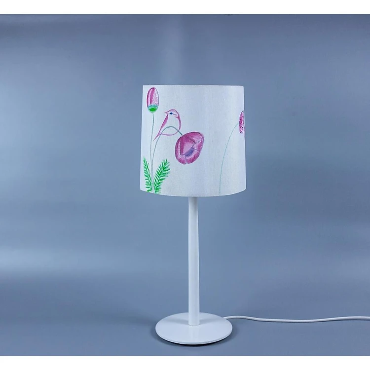 Đèn bàn gỗ chú chim mùa xuân Gỗ tự nhiên, vải thô đũi Hà Đông vẽ tay