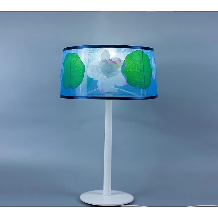 Đèn bàn gỗ hồ sen, Đèn bàn gỗ Gỗ tự nhiên, vải voan xốp, hoa lụa