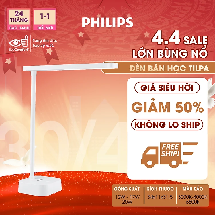 Đèn bàn Philips bảo vệ mắt DSK212 Tilpa PT 5W 4000K - Điều chỉnh độ sáng, êm dịu cho đôi mắt khỏe đẹp