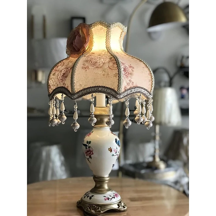 Đèn bàn thân gốm chao vải phong cách quý tộc TPDB848