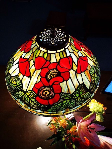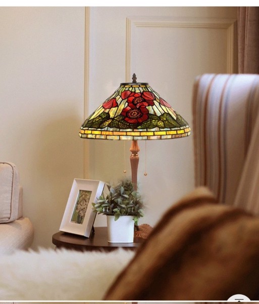 Đèn bàn Tiffany họa tiết Hoa đỏ sang trọng dành cho phòng ngủ